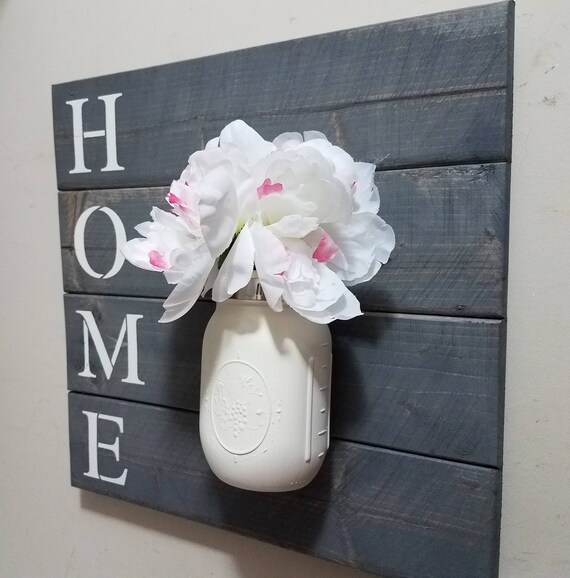 Rustic Decor Pallet Wood Sign Home Sign Mason Jar Holder Mason Jar Vase Rustic Home Decor House Warming Gift Hostess Gift